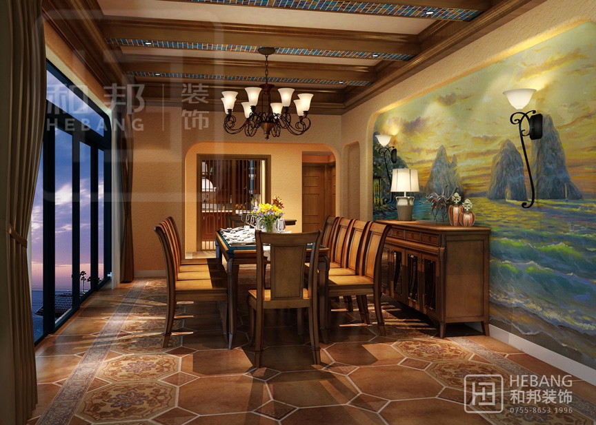 利用地中海和中式大膽結合,獨創一種與眾不同的混搭風格,更具視覺沖擊力。