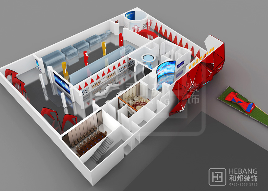 | 設(shè)計(jì)說(shuō)明 | 格力集團(tuán)展廳主體顏色為“中國(guó)紅”,整個(gè)設(shè)計(jì)現(xiàn)代感十足。不管是門頭設(shè)計(jì)采用的立體設(shè)計(jì)還是內(nèi)部的各種裝飾元素?zé)o不富有設(shè)計(jì)感。之外,整個(gè)展廳的科技感也是十分強(qiáng)的。 | ||||