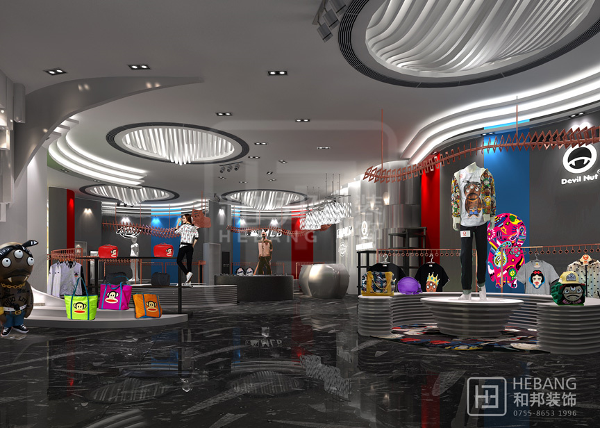 | 設(shè)計(jì)說(shuō)明 | 極具現(xiàn)代風(fēng)格,豐富的色彩運(yùn)用以及富有童趣的設(shè)計(jì)元素使整個(gè)賣場(chǎng)氛圍輕松、明快。創(chuàng)意十足的天花設(shè)計(jì)以及吸引眼球的墻面裝飾更能吸引消費(fèi)者眼球。 | ||||